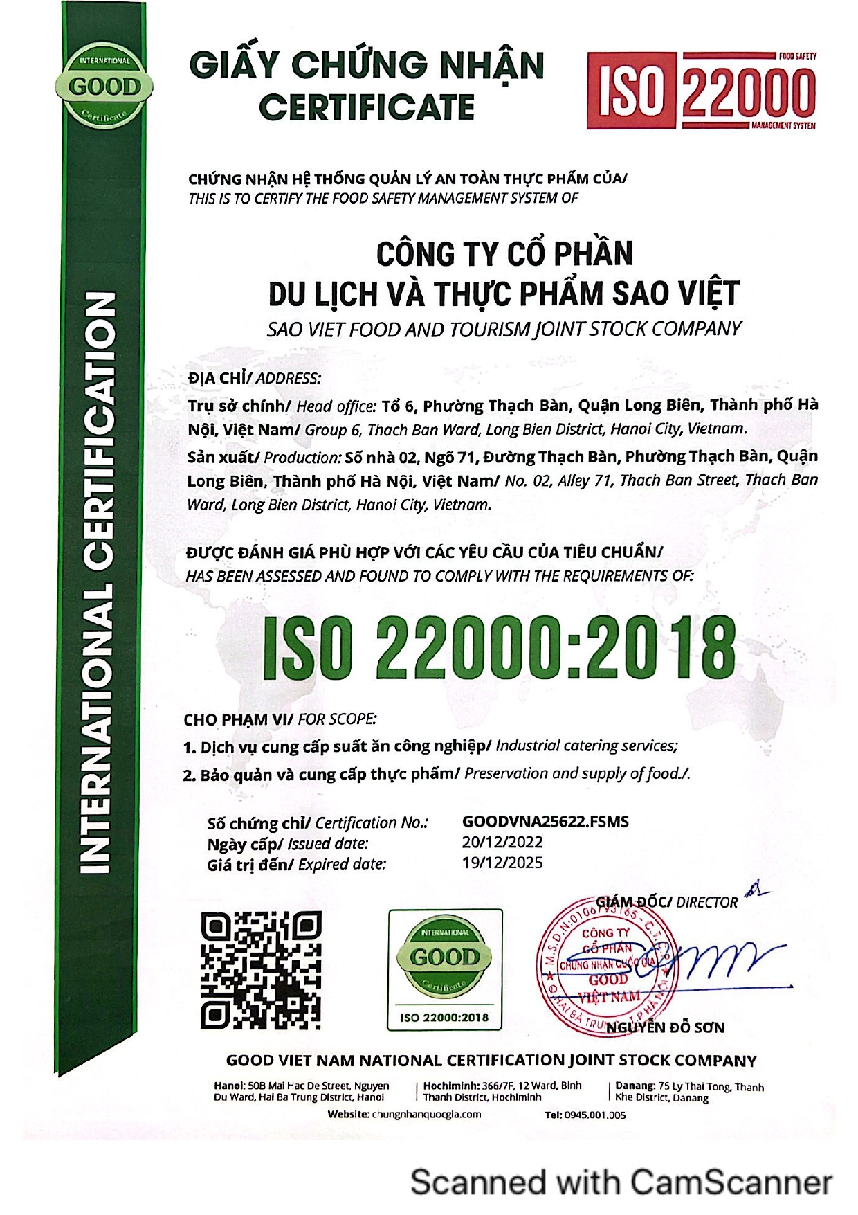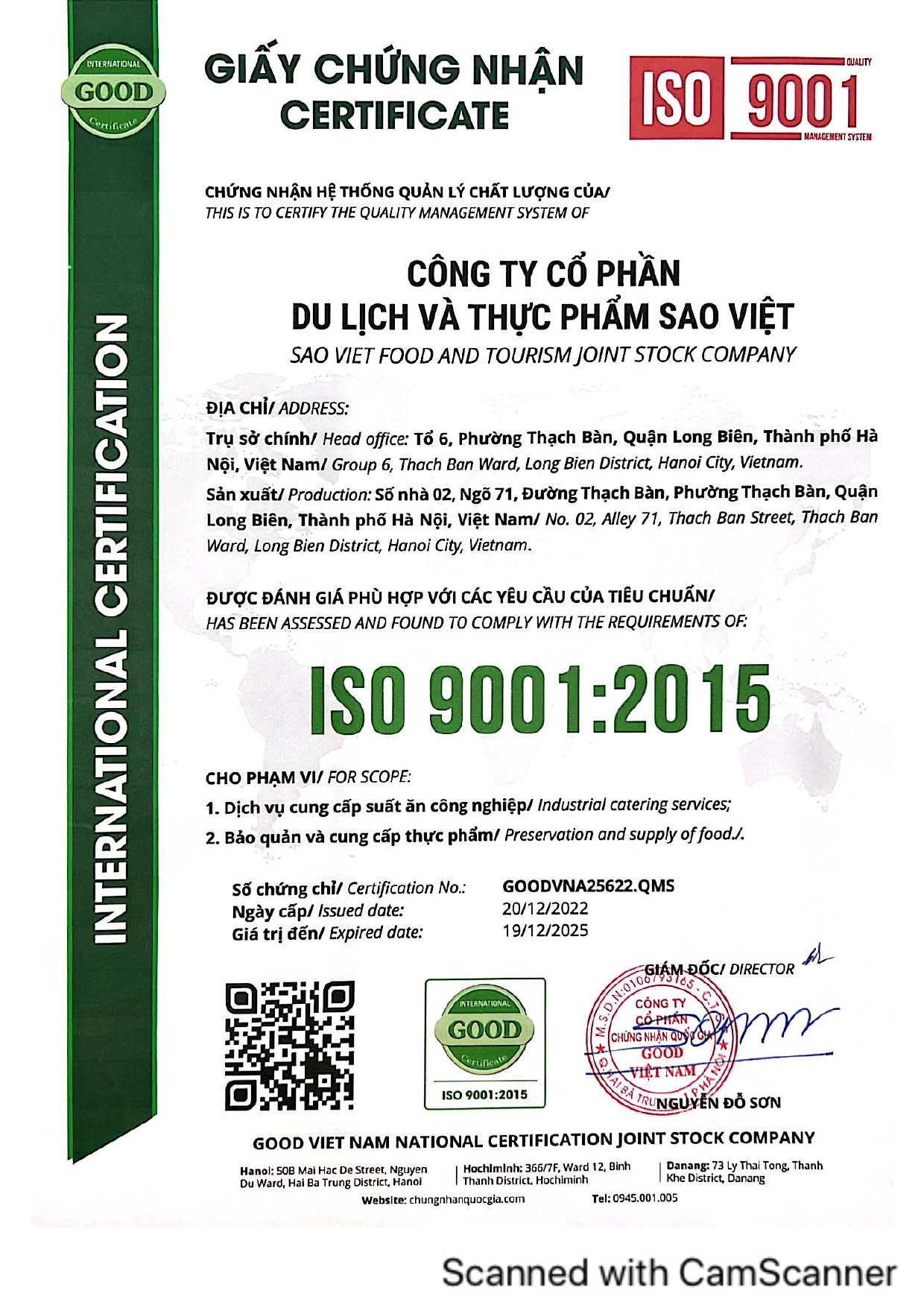 Công ty Thực Phẩm Sao Việt là công ty chuyên cung cấp thực phẩm tươi sạch và suất ăn công nghiệp cho các đơn vị, cơ quan, trường học.